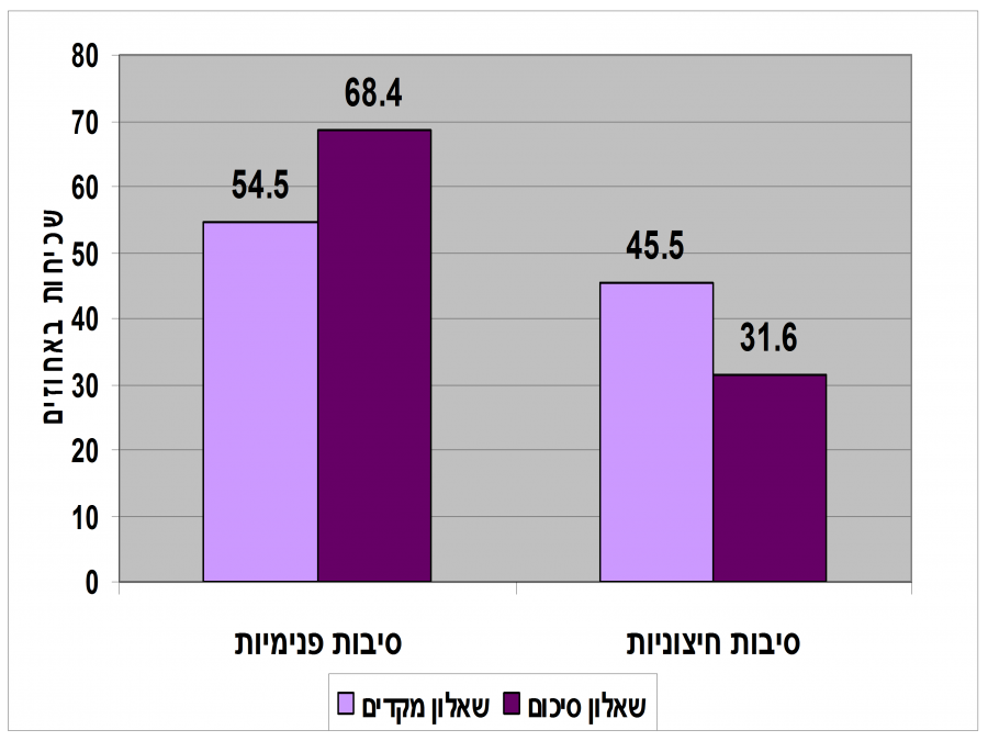 גרף 2: שכיחות הסיבות הפנימיות והחיצוניות אשר הביאו את המתאמנים למצב אקדמי לא-תקין